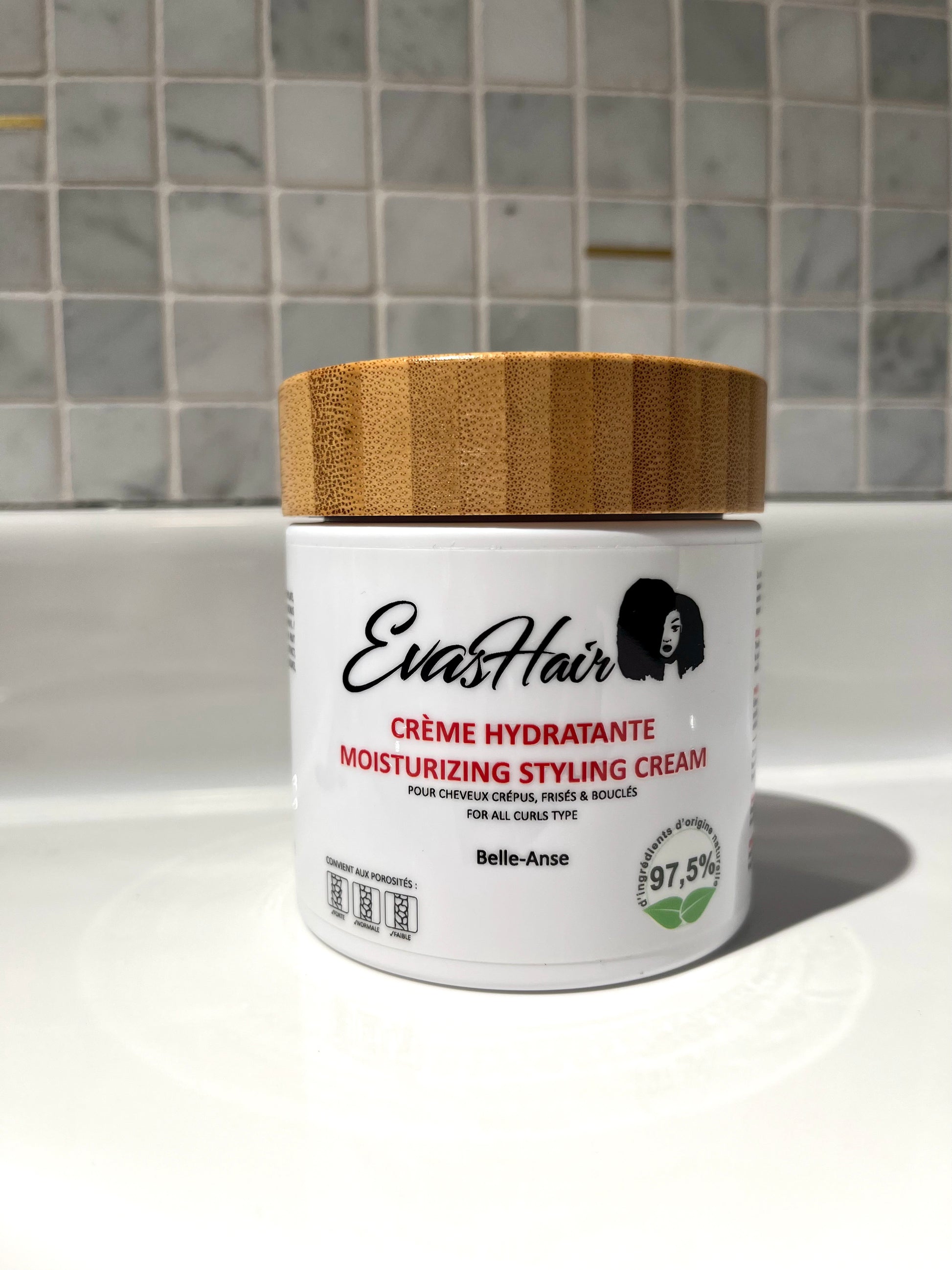 La Crème Capillaire hydratante Belle-Anse Evas'Hair est enrichie en beurre de mangue, en huile de ricin, en extrait de papaye, en miel, en extrait de sève de bambou et en huile de soja. C'est une crème hydratante pour prendre soin des longueurs des cheveux crépus fins, cheveux frisés et bouclés. Parfaite après un soin pour retenir l'hydratation des cheveux pendant plusieurs jours : au revoir les cheveux secs & cassants.