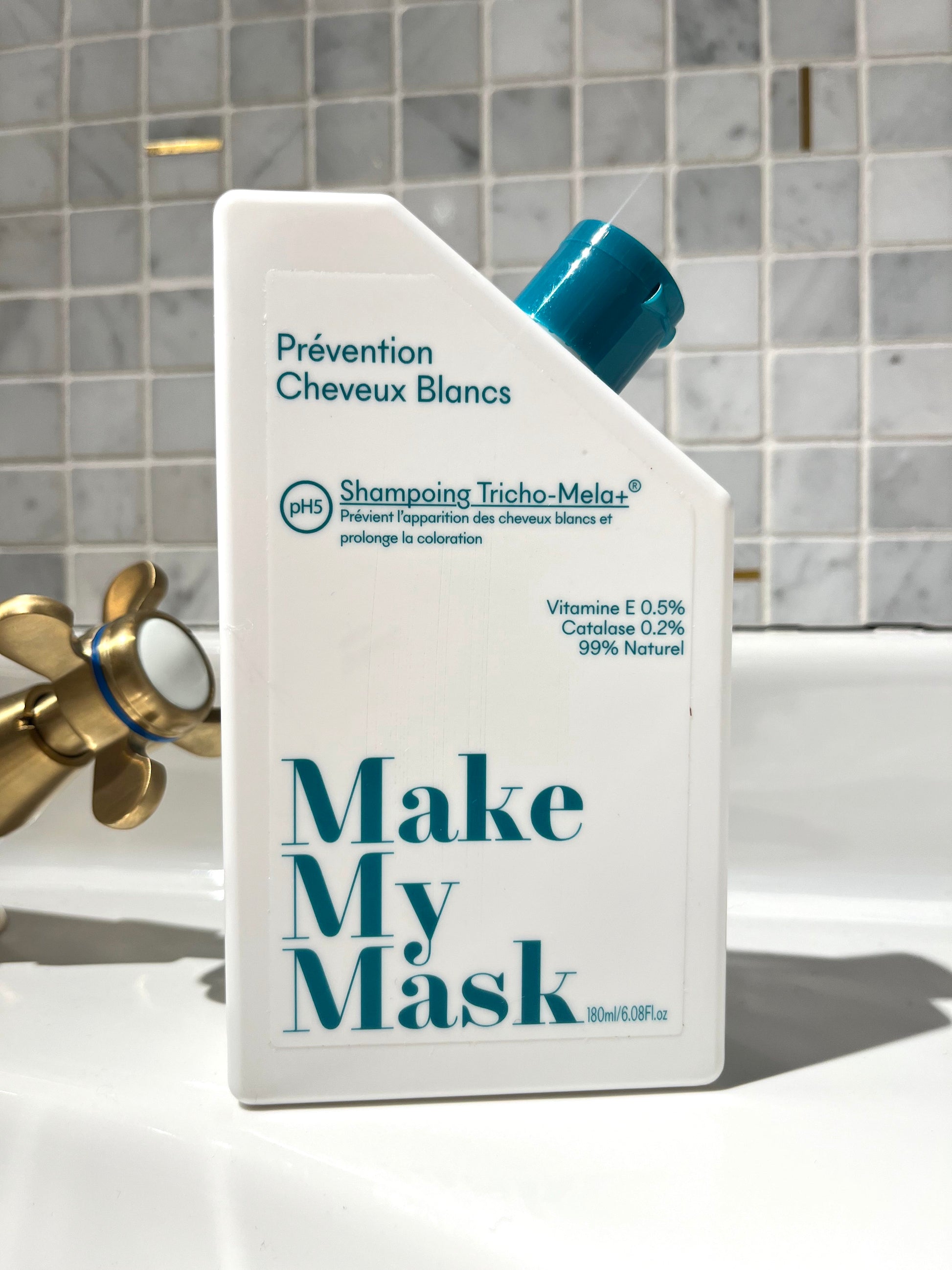 Le Shampoing Anti-Âge Tricho-Mela+ pH5 de MakeMyMask est un véritable soin régénérant pour le cuir chevelu et les cheveux matures.